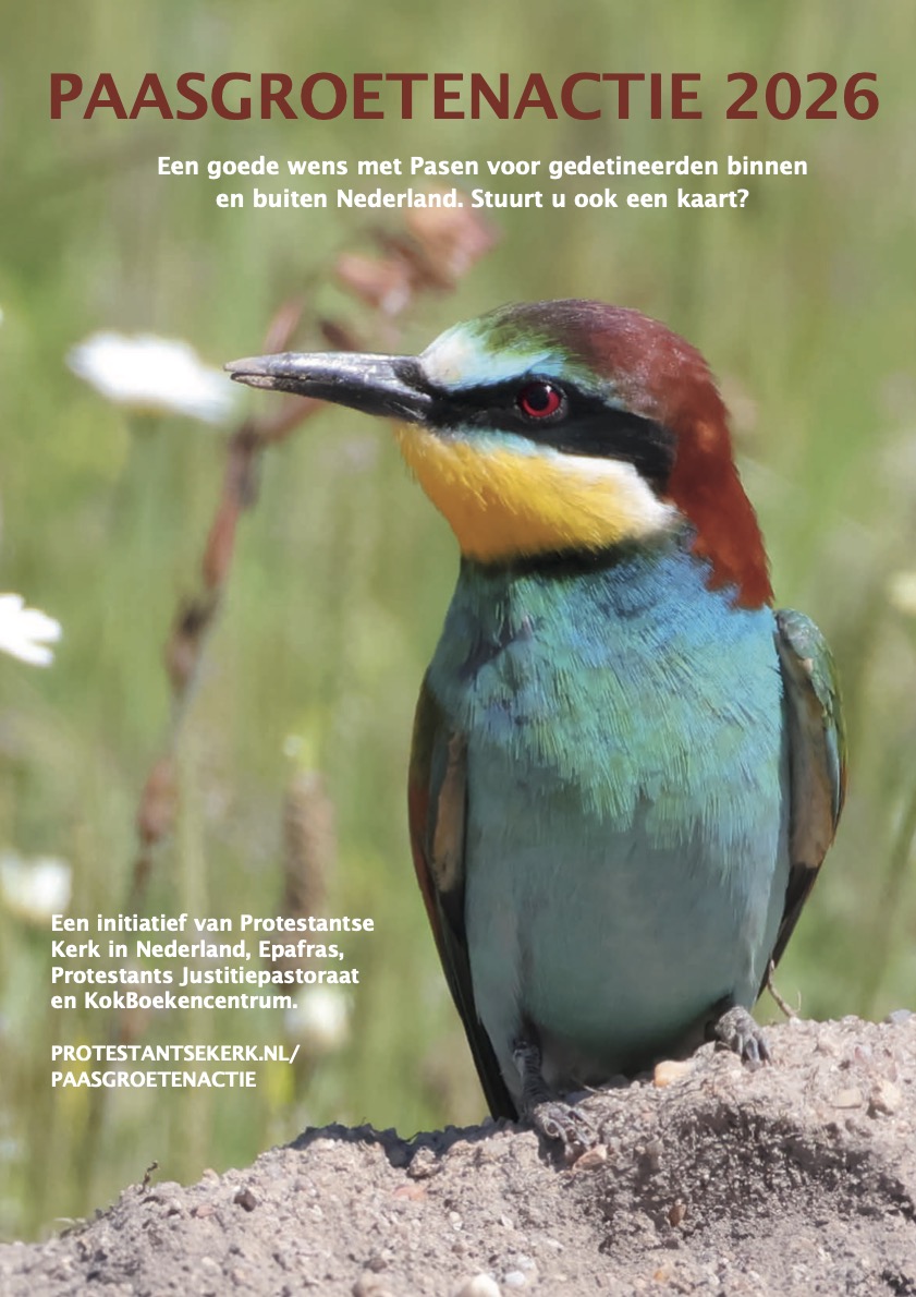 Paasgroetenactie 2026 Vanuit de Protestantse Kerk in Nederland sturen gemeenteleden ook dit jaar paasgroetenkaarten aan gedetineerden in Nederland. De afbeelding op de kaart is dit jaar gemaakt door een gedetineerde in de PI Nieuwegein. Het thema is ‘De onvoorwaardelijke liefde van een moeder voor haar kind’. (Zoals deze moeder haar kind liefheeft en beschermt, zo houdt Jezus onvoorwaardelijk van ons: Hij droeg onze pijn, stierf aan het kruis en overwon de dood uit liefde voor ons). Voor gedetineerden is het bemoedigend als ze een kaart ontvangen, zeker als daar ook iets persoonlijks op staat. Ook al weet u niet precies wie deze kaart ontvangt, u mag ervan overtuigd zijn dat een bemoedigende groet hen goed doet. Het is altijd een feestelijke gebeurtenis als de kaarten in de kerkdienst rond Pasen in de gevangenissen worden uitgedeeld. Ook onze gemeente doet mee aan de Paasgroetenactie. Vanaf 8 februari worden de kaarten uitgedeeld, u kan de kaarten thuis beschrijven maar ook op de tafels in de koffietuin is het mogelijk om de kaarten te schrijven. Als u de geschreven kaarten voorzien van een [1] postzegel uiterlijk weer 22 februari meeneemt naar de kerk, dan stuurt de diaconie deze naar de PKN. De kaarten worden in Utrecht gesorteerd en verdeeld over alle penitentiaire inrichtingen. Meer informatie over de Paasgroetenactie is te vinden op protestantsekerk.nl/paasgroetenactie. We hopen dat velen van u paasgroeten zullen schrijven! Hartelijk dank!