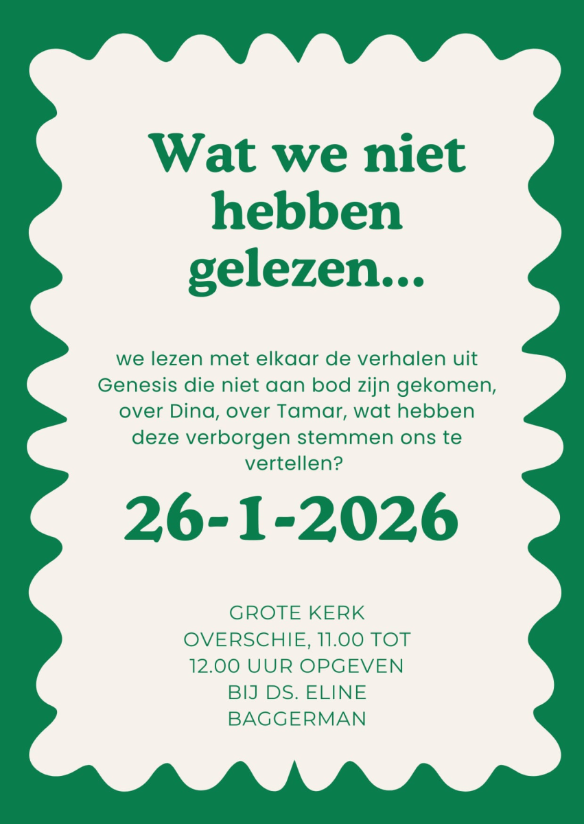 Zondag 18 januari 2026 Grote Kerk 10.00 uur H.A. Voorganger: Ds. Eline Baggerman Klik hier voor de liturgie Klikhier voor het zondagsbullet Zondag 25 januari 2026 Grote Kerk 10.00 uur Voorganger Ds.Eline Baggerman Zondag 1 februari 2026 Grote Kerk 10.00 uur Voorganger Ds.P.L. De Jong |